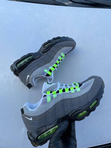 Muška sportska patika inspirisana Nike Air Max stilom, visoki model. - Boje: maslinasto zelena gornjište sa crnim panelima, beli Swoosh, bela srednji đon; prozirni vazdušni jastučić sa neonsko‑žut...