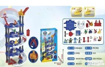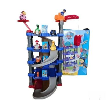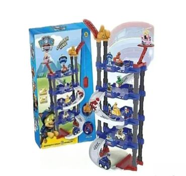 Patrolne šape velika garaža će vas oduševiti! Uronite u avanturu sa Skaj, Rokijem, Rablom, Cejsom, Marsalom ili Zumom, obezbedite parking i spustite se niz najveći tobogan do sada.