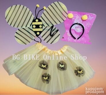 PCELICA MAJA Kostim za maskenbal 4u1 suknja krilaNOVO Kostim za decu maskenbal maskembal za devojcice, novi kostimi**Kostim 4 u 1 sadrzi > **1) suknjicu duzina 30cm, obim struka od 46 do 86cm2) krila3) stapić4) rajf Suknja za decu dečija dečija letnji Kostim vila krila**POGLEDAJTE OSTALE NASE OGLASE****> > > > > > > > > > > > > > > > > > > > > > > > > > > > > > > > > > > > > > > > > > > > > > > > > > > > > ****Ovaj artikal mozete poruciti na sledece nacine:****1) Porukom ovde na sajtu sa podacima za slanje i brojem telefona****2) Pozivom na mobilni ,****Porukom SMS, Viber, Whatsapp****(10-18h)** Trudimo se da odgovorimo i posaljemo artikal u kratkom roku. Pre slanja cemo obavezno jos jednom potvrditi detalje. **Robu saljemo Post Expressom.****Postarinu placa kupac prema cenovniku koji mozete videti na njihovom sajtu.****Robu mozete preuzeti i licno na Novom Beogradu uz obavezan prethodni dogovor.** Povracaj i reklamacije na robu u skladu sa Zakonom o zastiti potrosaca. BG BIKE ONLINE SHOP, BeogradMaticni broj: 65560429PIB: