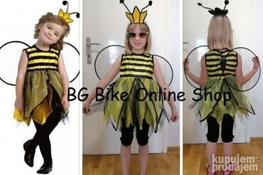 **PČELICA MAJA****KOMPLET SADRŽI : haljinu sa krilima krila + rajf sa krunom i antenicama**(ne dobijaju se naočare, helanke ni obuća sa slike) ** _Za decu uzrasta od 1 do 3 godine - obim grudi od 52 do 68cm, dužina haljine od 43 do 47cm._****_Za decu uzrasta od 4 do 6 godina -_**_obim grudi od 60 do 76cm, dužina haljine od 46 do 56cm._**_Na slici uživo je devojcica koja je sada napunila 6 godina i malo je sitnija ._****_Nosi broj od 4 do 6 godina._****_Za decu uzrasta od 6 do 8 godina_** _-(NA PAKOVANJU PIŠE OD 7 do 9); -ali vi procenite sami - obim grudi od 62 do 76cm, dužina haljine od 55 do 63cm._ novi kostimi, više veličina Preko 400 vrsta kostima. Pitajte šta Vas interesuje NOVO Kostim za decu deciji kostimi za maskenbal, maskembal , maska maske za halloween noc vestica ili zurku**POGLEDAJTE OSTALE NASE OGLASE****> > > > > > > > > > > > > > > > > > > > > > > > > > > > > > > > > > > > > > > > > > ****Ovaj artikal mozete poruciti na sledece nacine:****1) Porukom ovde na sajtu sa podacima za slanje i brojem telefona****2) Pozivom na mobilni ili porukom SMS, Viber, Whatsapp** Trudimo se da odgovorimo i posaljemo artikal u kratkom roku. Pre slanja cemo obavezno jos jednom potvrditi detalje. Robu saljemo Post Expressom. Postarinu placa kupac prema cenovniku koji mozete videti na njihovom sajtu. Robu mozete preuzeti i licno na Novom Beogradu uz obavezan prethodni dogovor. Povracaj i reklamacije na robu u skladu sa Zakonom o zastiti potrosaca. BG BIKE ONLINE SHOP Beograd Maticni broj: 65560429 PIB: