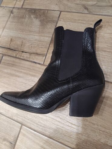 ZARA ženske čizme sa platformom - Model: crne čizme do pola lista - Brend: ZARA (logo na đonu) - Materijal gornjišta: glatka imitacija kože sa elastičnim tekstilnim panelima oko lista - Kopčanje: ...6 000 RSD