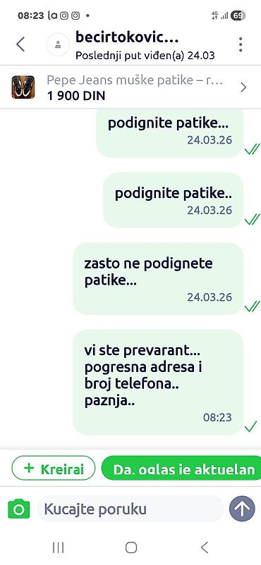 Napomena: u porukama je traženo da patike budu „ispravne“ i pominje se slanje kao CC paket.