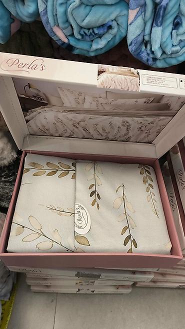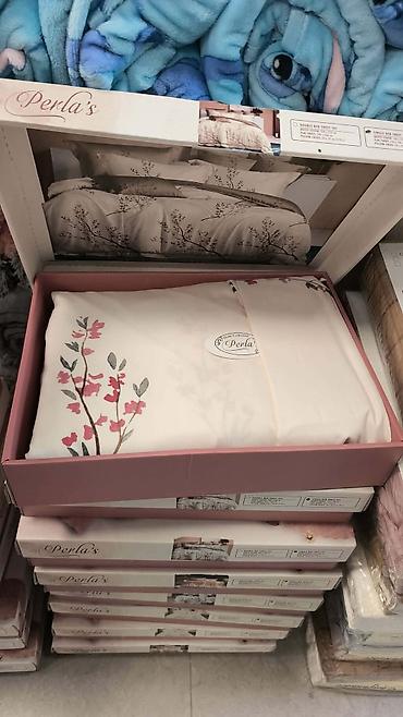 Komplet posteljine koji uključuje navlaku za jorgan i jastučnice, dostupan u tri varijante dezena. Prva varijanta ima plavo-bele listove, druga sivo-roze cvetove, a treća sivo-bele cvetove. Svaki s...