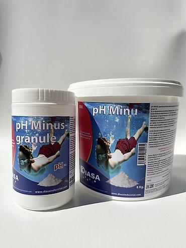 Doziranje: 1,5 kg pH minusa na 100 m³ vode (ili 15 g/m³ za manje bazene) smanjuje pH vrednost za 0,2 jedinice. Pre upotrebe, rastvoriti sredstvo u vodi, pa ravnomerno sipati po površini bazena, u večernjim satima kada nema kupača.