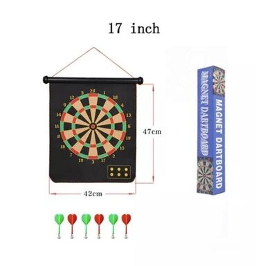 Pikado sa magnetnim strelicama dolazi u 3 dimenzije: 12 inch, 15 inch i 17 inch. Magnetni pikado dolazi u kartonskoj kutiji, a tablu izvadite zarolanu. Tabla je čvrsta i kvalitetno napravljena, sa metalnom postavom. Obesite je o ekser na zidu i gađajte je strelicama koje, umesto igle na vrhu, imaju veoma jak magnet. 🏆