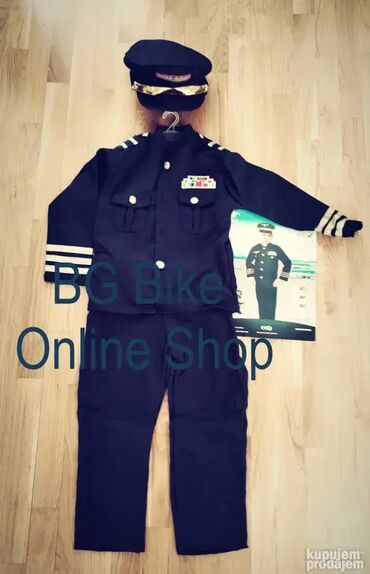 Pilot novi kostimi pilota više veličinaKomplet sadrži :Košulju, pantalone i kapu a na poklon dobijate dečiju kravatu na lastiš Ove godine ovaj model nema ovu žutu traku što visi od ramena.za uzrast 3 do 5 godina - kosulja -obim grudi 60 do 70cm, duzina 44cm, pantalone obim struka od 44 do 58cm, duzina pantalona 64cm, unutrasnja nogavica 44cm Na pakovanju piše da je za 2 do 4godine ali po merama mislimo da je ipak za 3 do 5, izmerite dete pa procenite sami. za uzrast 5 do 7 godina - kosulja -obim grudi 72 do 74cm, duzina 49cm, pantalone obim struka od 52 do 66cm, duzina pantalona 71cm, unutrasnja nogavica 48cmza uzrast 7 do 9 godina na pakovanju pise od 8 do 10 ali vi proverite.- kosulja -obim grudi 74 do 81cm, duzina 54cm, pantalone obim struka od 52 do 66cm, duzina pantalona 75cm, unutrasnja nogavica 51cm Preko 300 vrsta kostima: NOVO Kostim za decu deciji kostimi za maskenbal, maskembal , maska maske za halloween noc vestica ili zurku, rodjendanPOGLEDAJTE OSTALE NASE OGLASE> > > > > > > > > > > > > > > > > > > > > > > > > > > > > > > > > > > > > > > > > > Ovaj artikal mozete poruciti na sledece nacine:1) Porukom ovde na sajtu sa podacima za slanje i brojem telefona2) Pozivom na mobilni ili porukom SMS, Viber, Whatsapp. Trudimo se da odgovorimo i posaljemo artikal u kratkom roku. Pre slanja cemo obavezno jos jednom potvrditi detalje. Robu saljemo Post Expressom. Postarinu placa kupac prema cenovniku koji mozete videti na njihovom sajtu. Robu mozete preuzeti i licno na Novom Beogradu uz obavezan prethodni dogovor. Povracaj i reklamacije na robu u skladu sa Zakonom o zastiti potrosaca. BG BIKE ONLINE SHOPBeogradMaticni broj: 65560429PIB: