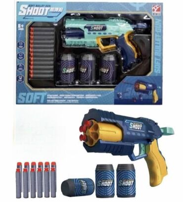 Uključuje 12 penastih strelica, meta i konzerve za dodatnu igru i izazove.
