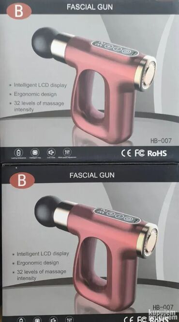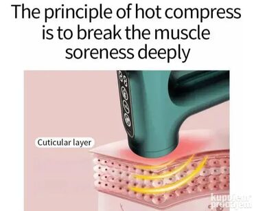 Rucni masazer pistolj. rucni masazer pistolj 2 tih, jak vibracijom opusta misice, oslobadja bol, otklanja celulit itd. sa 4 nastavka za masažu i 10 brzina (koji mozete videti na displey-u) sa punji...