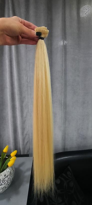 Vizuelno: duga, sjajna i ujednačena vlakna, pramen vezan gumicom na vrhu radi lakšeg rukovanja tokom ugradnje.