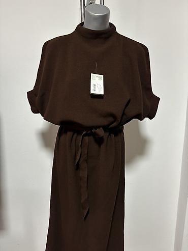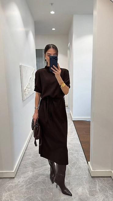 Pletena haljina u čokoladno braon boji - Kroj: ravna silueta sa