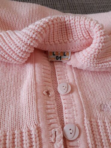 H&M dečji džemper/sweatshirt - Boja: bela - Materijal: pletivo sa teksturom (saća), mekano i udobno - Model: dugi rukavi, okrugli izrez, elastične ranfle na rukavima i donjem rubu - Detalj: veliki...