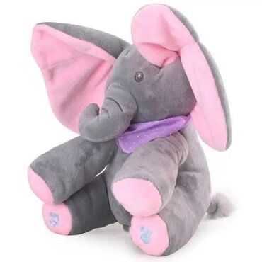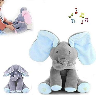 Plišani slonić sa muzikom i interaktivnim ušima - Mekan pliš u sivoj boji sa plavim ili roze detaljima - Velike uši od mekog materijala koje se pomeraju tokom igre - Ušivena dugmad na šapama: “Pla...