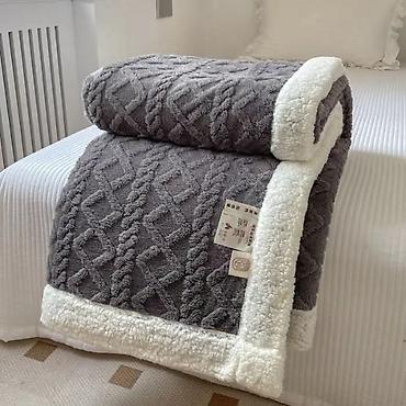 Plišana prekrivač/deka za bračni krevet - Materijal: mekana, gustapliš/šerpa tekstura sa reljefnim dezenom (geometrijski uzorak), prijatan na dodir i topao. - Namena: prekrivač za krevet ili sofa-...