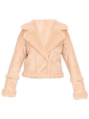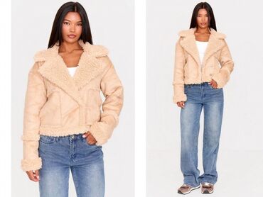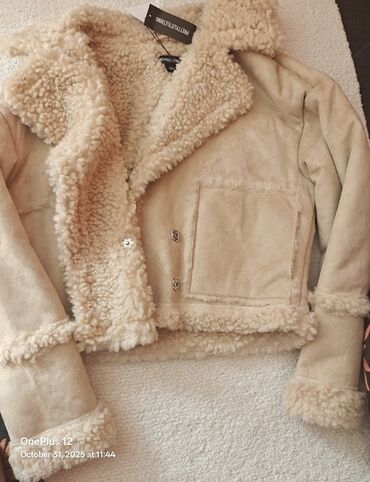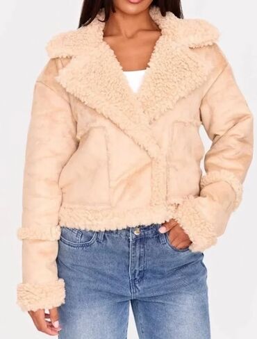 Ženska jakna od veštačkog krzna (teddy/šerpa) – bež - Veličina: M/L (etiketa “New collection”) - Boja: svetlo bež/krem - Materijal: mekano teddy/šerpa runo spolja; glatka postava; rebraste manžetn...