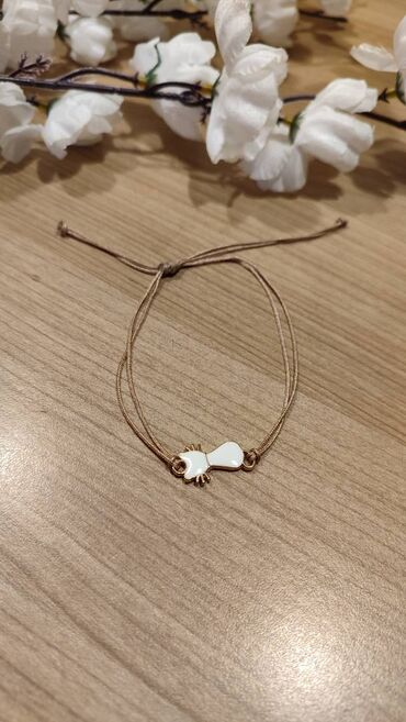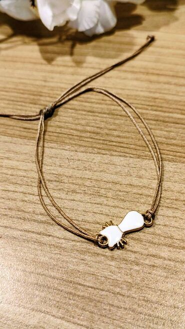 Narukvica sa podesivim koncem i belim emajl privjeskom mašnice