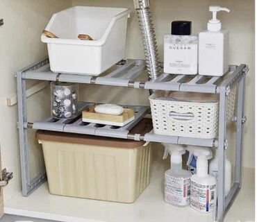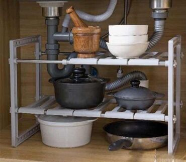 Ova podesiva kuhinjska polica omogućava vam da lako organizujete prostor ispod sudopere, savršeno se prilagodjavajući odvodnim cevima i maksimalno koristeći prostor za odlaganje.