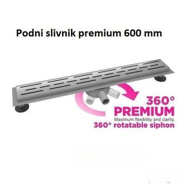 Podni slivnik Basic je dugačak 650 i 750 milimetara. Ova linija slivnika je posebno interesantna, budući da pruža svežinu u dizajnu i u celokupnom vizuelnom utisku kupatila. Veoma je moderno, stoga se savršeno uklapa u savremena kupatila. Mat metalni sjaj ovog slivnika se uklapa u skoro svako kupatilo. Podni slivnik iz PREMIUM kategorije. Podni slivnik je dugačak 600 milimetara. Ova linija slivnika je posebno interesantna, budući da pruža svežinu u dizajnu i u celokupnom vizuelnom utisku kupatila. Ali to nije sve, ovaj slivnik ima rotirajuću glavu koja je prilagodljiva i veoma laka za ugradnju bez obzira gde se vaša odvodna cev nalazi Veoma je moderno, stoga se savršeno uklapa u savremena kupatila.
