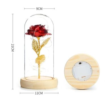 Ruže od crvene folije su precizno ručno izrađene od strane veštih zanatlija. Šareni LED dioda daje Zlatnoj ruži još sanjiviji i blistaviji sjaj. Prikažite ga kroz providnu staklenu kupolu. Ovo je definitivno poklon koji može dirnuti devojčino srce.