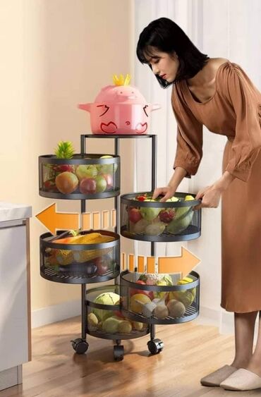 Rotirajuca Polica 5 delova Visenamenska Polica Ovaj okrugli rotirajući kuhinjski stalak za odlaganje je napravljen od visokokvalitetnog čelika, sa crnom bojom protiv rđe, koja je antikorozivna, vodootporna, jaka i izdržljiva. Kolica za skladištenje mogu da podnesu opterećenja velikog kapaciteta i zadovoljiće vaše dugoročne potrebe skladištenja.