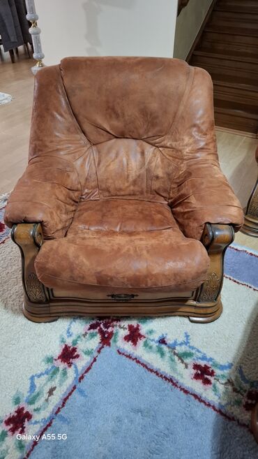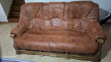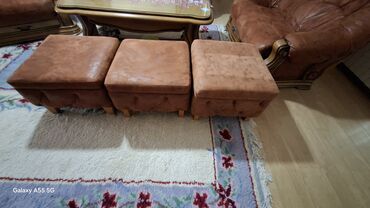 Polovan stilski namestaj, trosed, dvosed, fotelja, tri taburea i sto ,puno drvo ,ocuvan u dobrom stanju