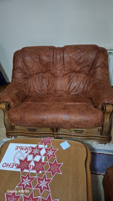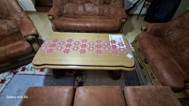 Polovan stilski namestaj, trosed, dvosed, fotelja, tri taburea i sto
