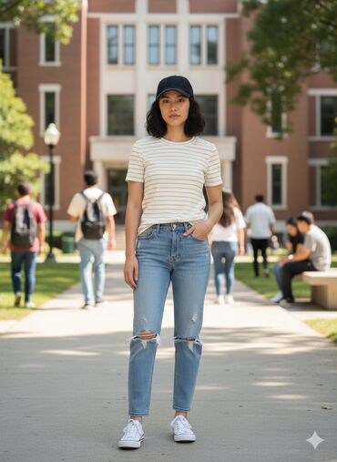 Plava ženska majica kratkih rukava, brend Fruit of the Loom. Veličina: M. Materijal: 100% pamuk (navedeno na etiketi). Okrugli izrez, mekana tkanina. Na prednjoj strani je print sa kravicom koja dr...