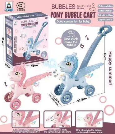 Poni guralica koja izbacuje balončiće, svetli i svira