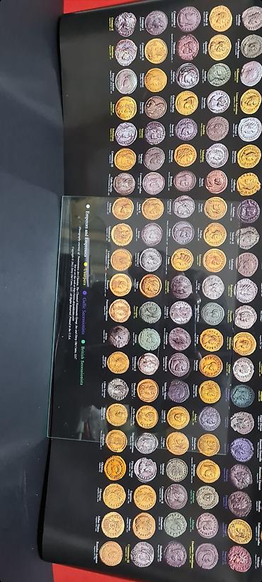 - Ispod svake kovanice ispisano je ime istorijske ličnosti (npr. Julius Caesar, Augustus, Nero, Trajan, Marcus Aurelius, Diocletian, Constantine I i mnogi drugi), uz godine vladavine.