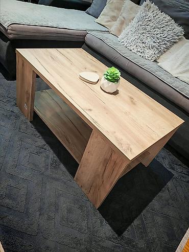 Set od dva okrugla klub stola – industrijski dizajn - Dimenzije: veći sto prečnik 70 cm, manji sto prečnik 50 cm - Materijal ploče: drvo/top površina u toplom orašastom tonu - Konstrukcija: stabil...