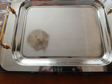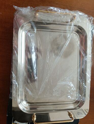 Pravougaona poslužavna tacna sa pozlaćenim ručkama