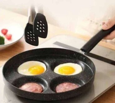 Nelepljivi tiganj se razlikuje od običnih tiganja, ovaj tiganj za pečenje jaja ima dizajn od 4 šolje, koji može pržiti četiri jaja ili različite hamburgere, ili četiri različite namirnice u isto vreme kako bi zadovoljili dnevne potrebe za doručkom običnih porodica .