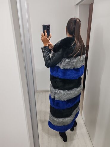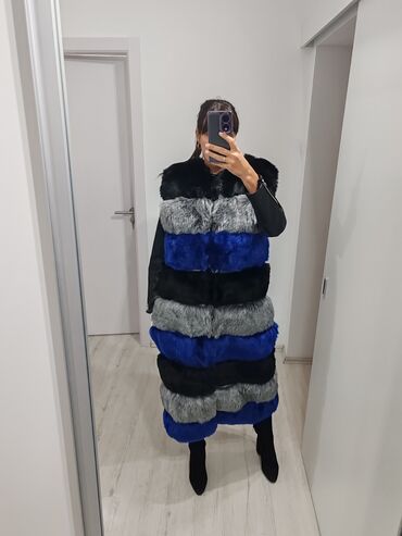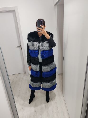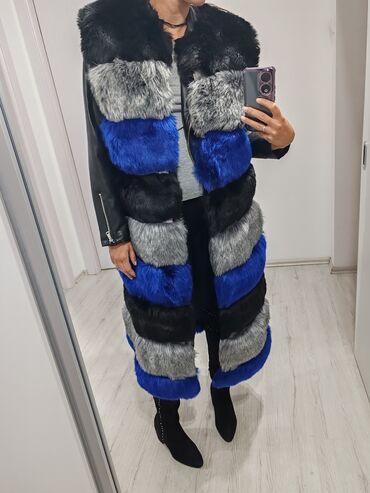MPredivan dugački krzneni prsluk, zakopcava se, izmedju krzna su kozni detalji