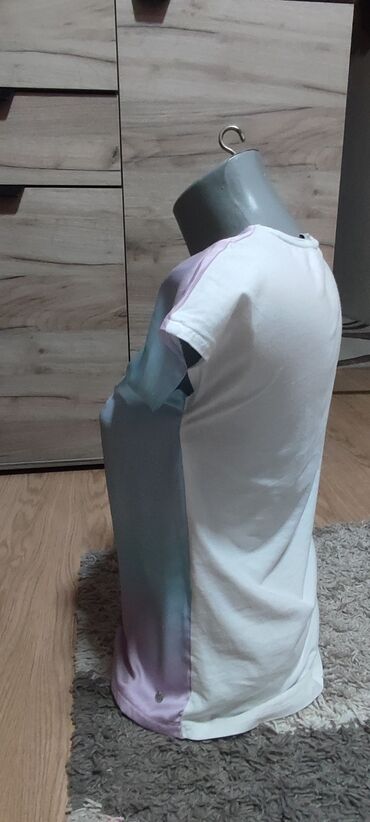 Ženska majica kratkih rukava, crna, sa okruglim izrezom. Na prednjoj strani je detaljan dekorativni print u zlatno-bež tonovima u stilu mandale sa cvetnim motivima i sjajnim akcentima. Materijal: p...