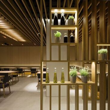 Pregradni zid od letvica „Timber Oak “ kombinuje prirodnu lepotu drveta sa dinamičnim, kaskadnim dizajnom. Puno drvo domaće proizvodnje je idealno rešenje za sofisticirane restorane, poslovne prost...