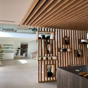 Pregradni zid od letvica „Echo Wood “ unosi savremenu eleganciju u vaš enterijer. Sa samostojećim drvenim letvicama koje prate talasaste linije plafona, ovaj pregradni zid stvara ritmičan i harmoni...