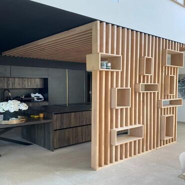 Pregradni zid od letvica „Echo Wood “ unosi savremenu eleganciju u vaš enterijer. Sa samostojećim drvenim letvicama koje prate talasaste linije plafona, ovaj pregradni zid stvara ritmičan i harmoni...