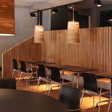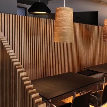 Pregradni zid od letvica „Timber Oak “ kombinuje prirodnu lepotu drveta sa dinamičnim, kaskadnim dizajnom. Puno drvo domaće proizvodnje je idealno rešenje za sofisticirane restorane, poslovne prost...