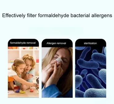 Prečišćivač vazduha opremljen sa dve boce sunđera sa aktivnim ugljem i elementima filtera koji uklanjaju 99,97% vazdušnih čestica malih čak 0,3 mikrona 🌫️