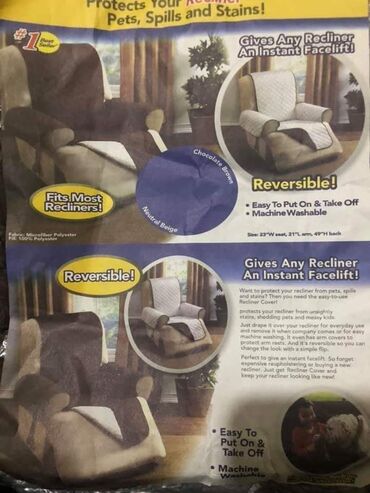 Osim što je kvalitetan, prekrivač i jako lepo izgleda. Materijal je prošiven mikrovlaknima i navlaka ima dva lica: jedno braon, a drugo mlečno bele boje. Pored dela za sedeći deo fotelje dobijaju se i dva dela za naslone za ruke.