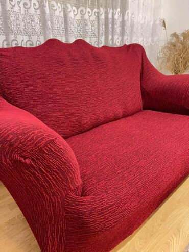 Bord-crvena navlaka za dvosed (i fotelju – vidljiv je pripadajući komad sa strane). - Materijal: meko, elastično rebrasto/žakard rastegljivo platno koje se prilagođava obliku nameštaja. - Dizajn...3 000 RSD