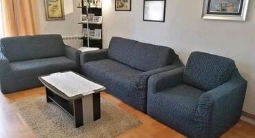 Elastične navlake za sofe i fotelje - Materijal: rastegljiva tkanina sa reljefnom teksturom (spandex/poliester mešavina) koja se lako prilagođava obliku garniture. - Dizajn: moderni, diskretni šar...