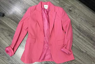 Ženski crni blejzer – H&M - Model: klasični strukirani sako sa reverima - Boja: crna - Kopčanje: jedno dugme napred - Džepovi: dva dekorativna džepa sa lajsnama napred - Postava: glatka, crna - Ve...