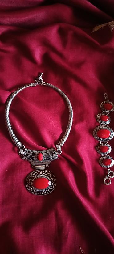 • Komplet nakita: ogrlica i narukvica od crvenih perli - Klasična