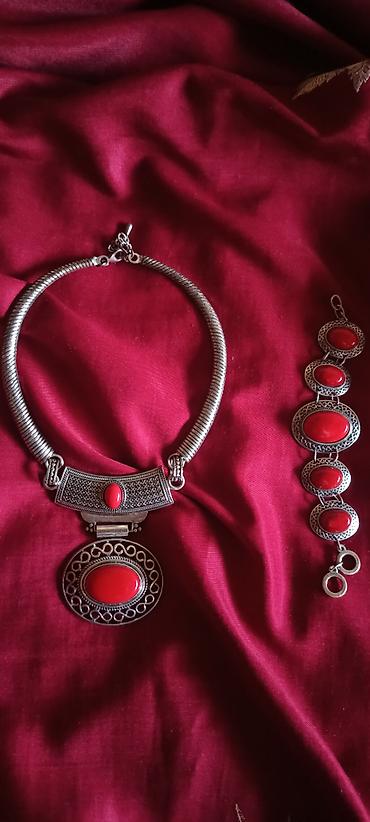Prelep set nakita ogrlica i narukvica, efektan, elegantan, podiže svaku kombinaciju i jednostanije komade odeće. Mrvicu je i neupadljivo metal promenio boju blizu kopče.