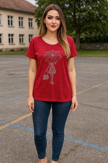 O trošku kupcaPrelepa crvena majica sa cirkonima