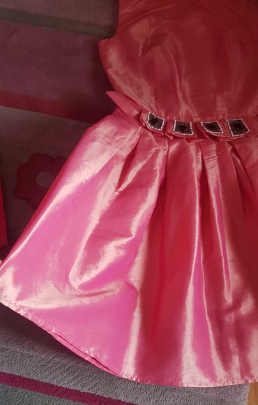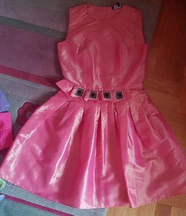 Prelepa elegantna haljina. Gore uska od struka se siri. Blago se presijava materijal. Savrseno stoji.. prefinjena... Roze boje. Na struku stras.. medaljoni. Kao kais.. Nova! Imam istu i ljubicastu i zelenu. Malo se izguzvala.. Pise m velicina.. pre s. Moze i slabiji m. Postavljena