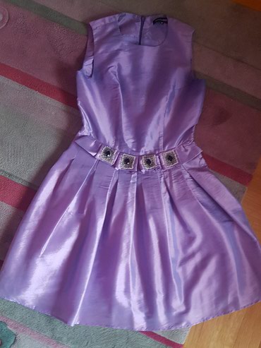 Koktel, klubPrelepa elegantna haljina. Gore uska od struka se siri. Blago se presijava materijal. Savrseno stoji.. prefinjena... Ljubicasta boje. Na struku stras.. medaljoni. Kao kais.. Nova! Imam istu i roze i zelenu. Malo se izguzvala.. Pise m velicina.. pre s. Moze i slabiji m. Postavljena. Pri slikanju vidim na ledjima par plavih fleka..