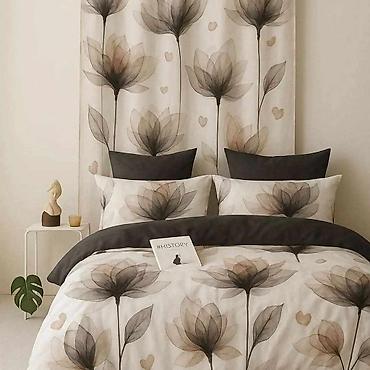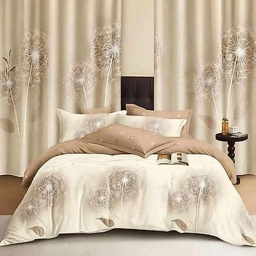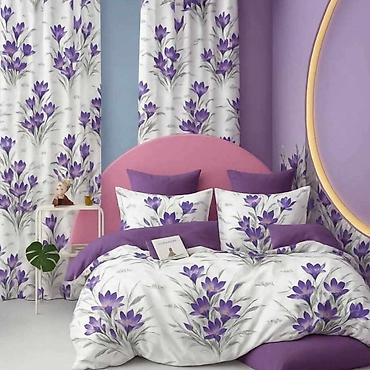 Prelepi modeli posteljina za francuski ležaj, komplet sa draperima. Usklađeni setovi sa modernim floralnim motivima: ljubičasti cvetovi na beloj podlozi, bež maslačci i nežne prozračne latice u prirodnim tonovima. Dizajnirano tako da posteljina i draperi čine harmoničnu celinu u spavaćoj sobi.