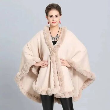 Ženske pončo-kapice od veštačkog krzna - Elegantni topli pončo sa širokim kragnom i bogatim krznenim obrubom duž ivica - Mekan, plush materijal, prijatan na dodir; unutrašnjost glatka za udobno no...