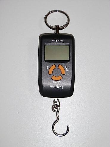 Sadržaj: digitalna viseća vaga, metalna kuka, uputstva/ambalaža. Na kutiji je naglašeno: “NOT FOR COMMERCIAL USE”.